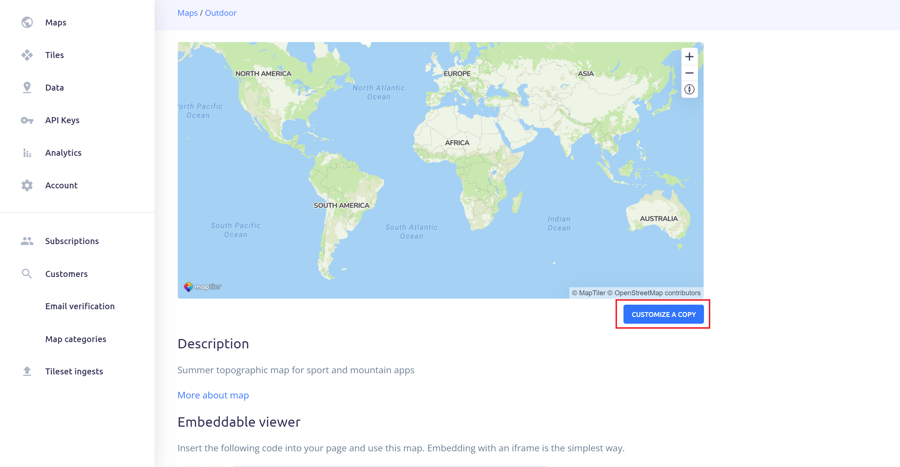 To use the Contours tileset in your maps on MapTiler Cloud, you need to add it via the MapTiler Customize tool. A new layer can be added either through the “Plus” button in the Layers or Data sources tab. By default, contours and mountain peaks are included in the Topo, Outdoor, and Winter map styles.
