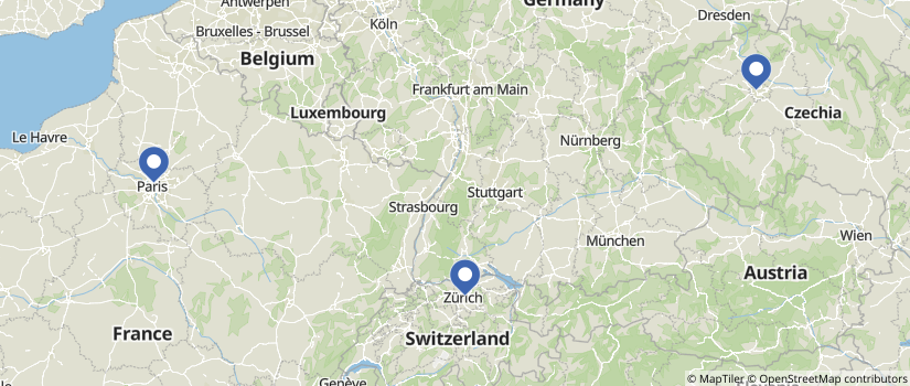 Each marker can also have a different color - specified as the 3rd parameter (e.g. 14.4,50.1,red|8.6,47.4,blue).