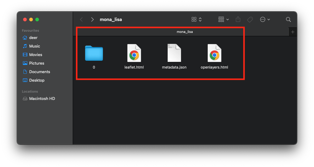 Each zoom level has a dedicated folder with raster tiles generated from your original image.