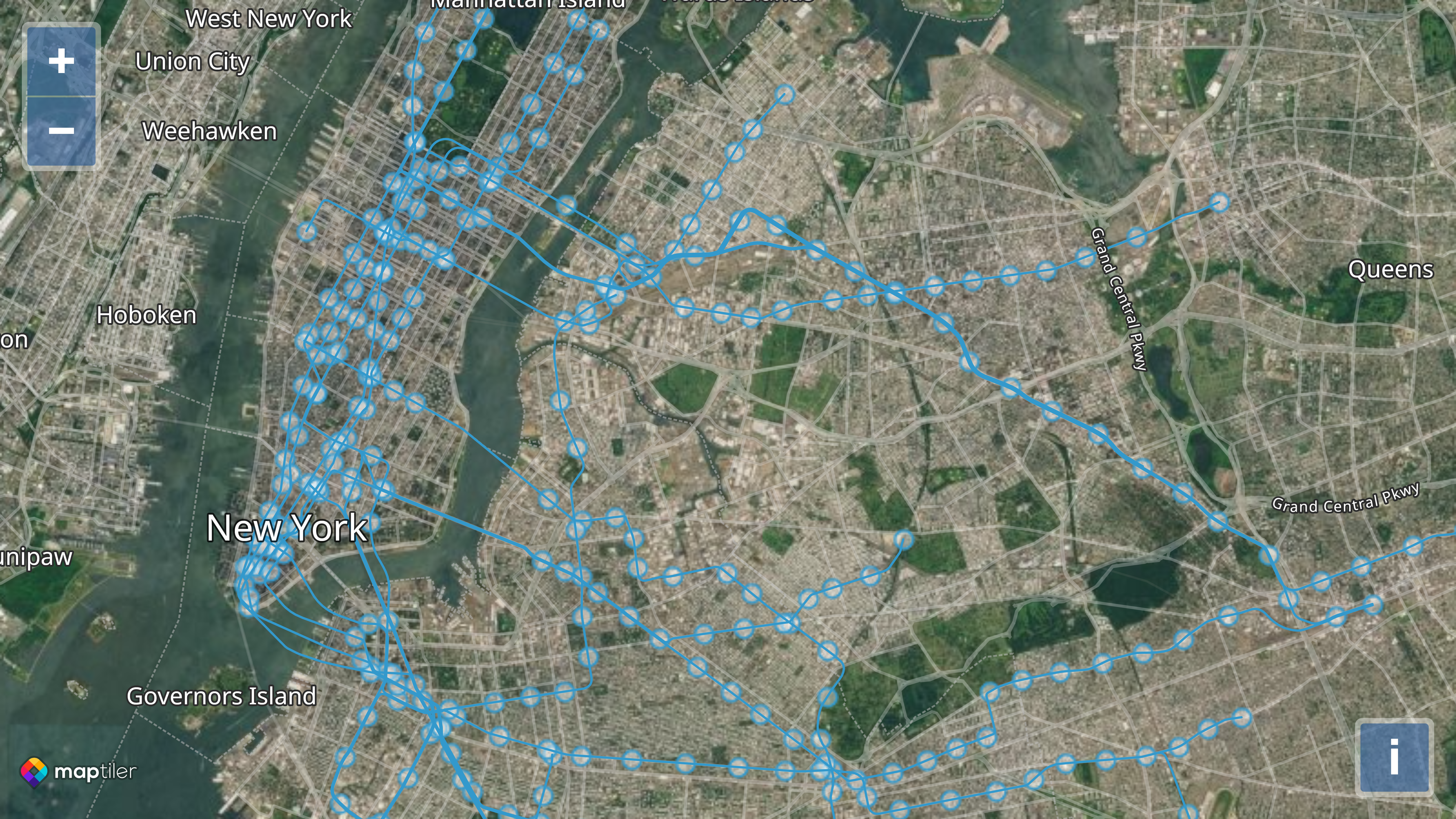 Adding GeoJSON to the map will be demonstrated on datasets visualizing subway stations and lines in New York.
